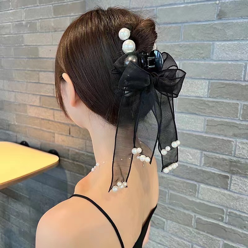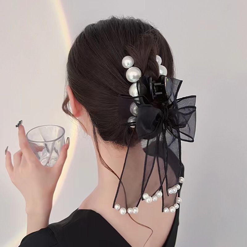 (Hello Girl)F112 Jepit Rambut Wanita Motif Pita Mutiara Panjang Gaya Korea Import