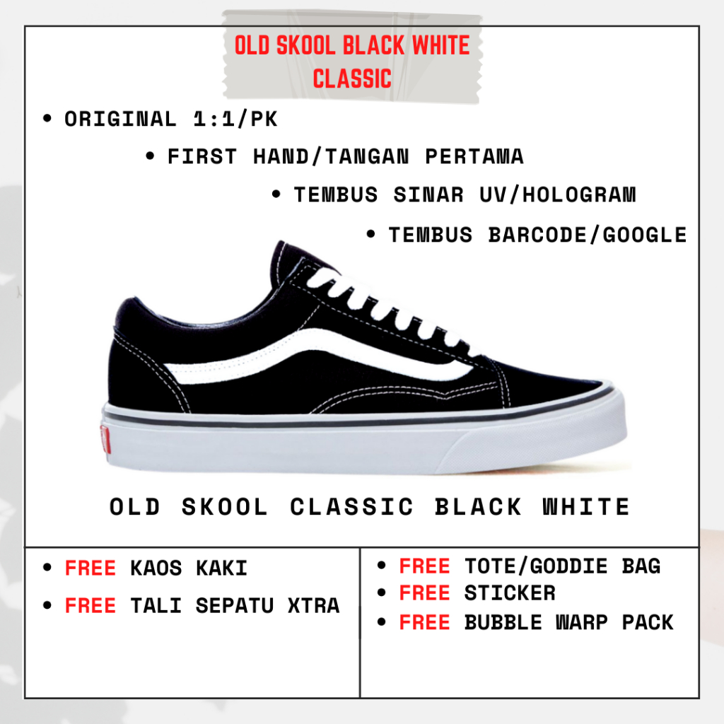 [PROMO] 100 PERSEN BNIB SEPATU OLD SKOOL BLACK WHITE / SNEALERS OLDSKOOL HITAM PUTIH