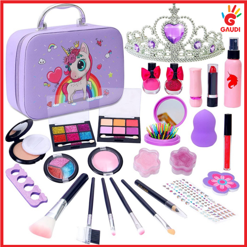 DISCON Gaudi Mainan Make Up Anak Perempuan Tidak Beracun 22IN1 Tas Kosmetik Fashion Portabel Kado Ulang Tahun Cewek Set