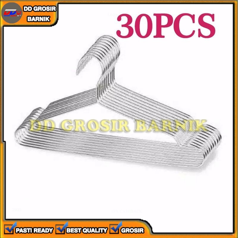 30PCS GANTUNGAN BAJU HANGER STAINLESS KAWAT BAJA BESI TAHAN ANTI KARAT 30 PCS I gantungan baju