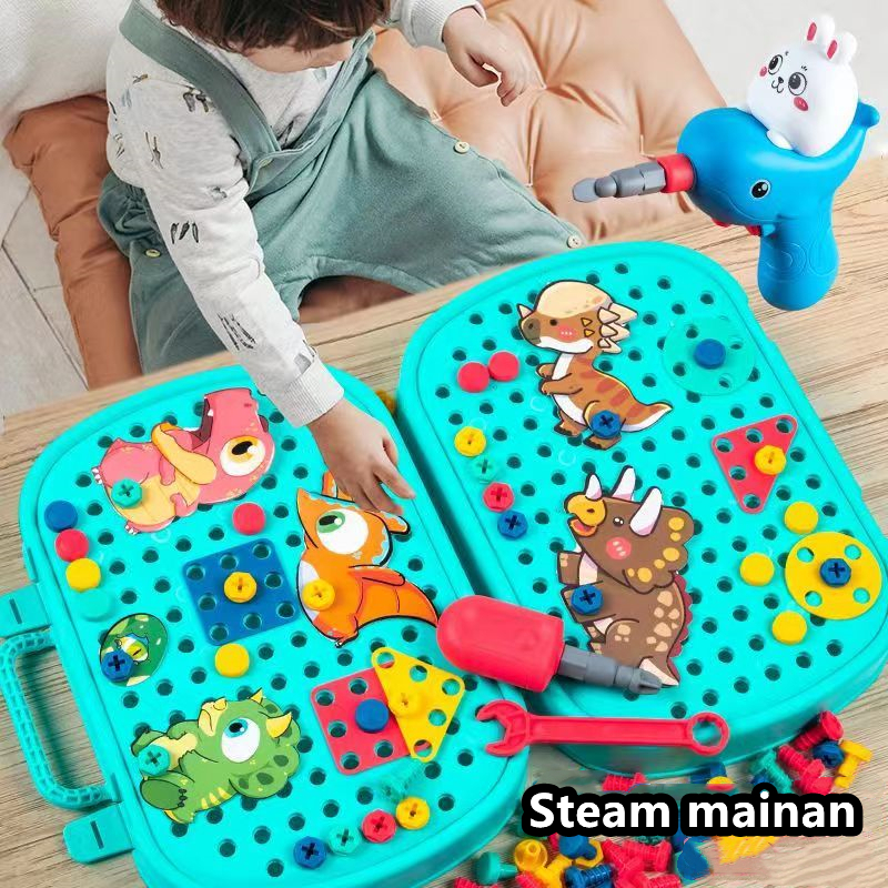 [PROMO] SEKRUP BOR LISTRIK SIMULASI DINOSAURUS KREATIF 3D, MAINAN PUZZLE RAKITAN BOR LISTRIK BONGKAR PASANG