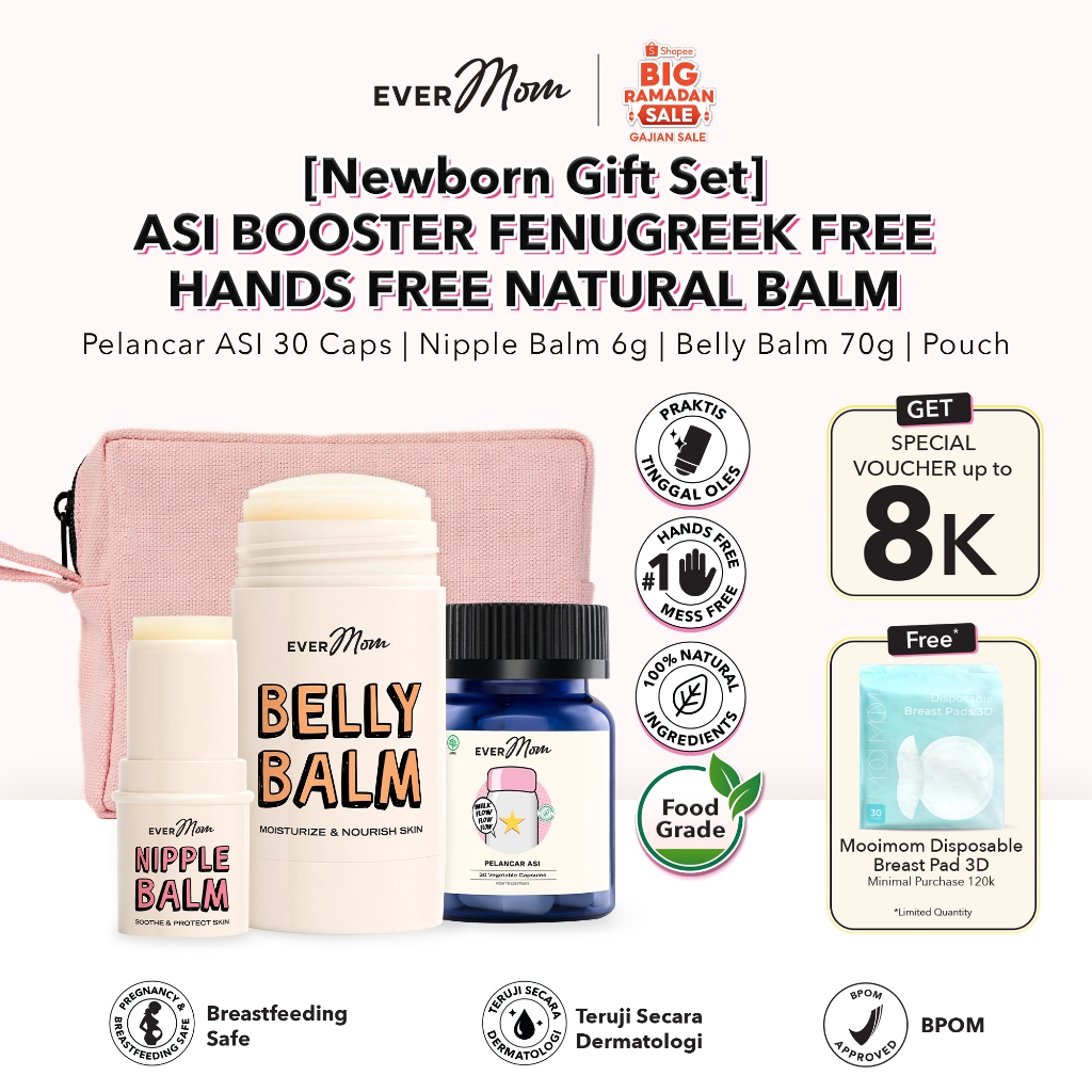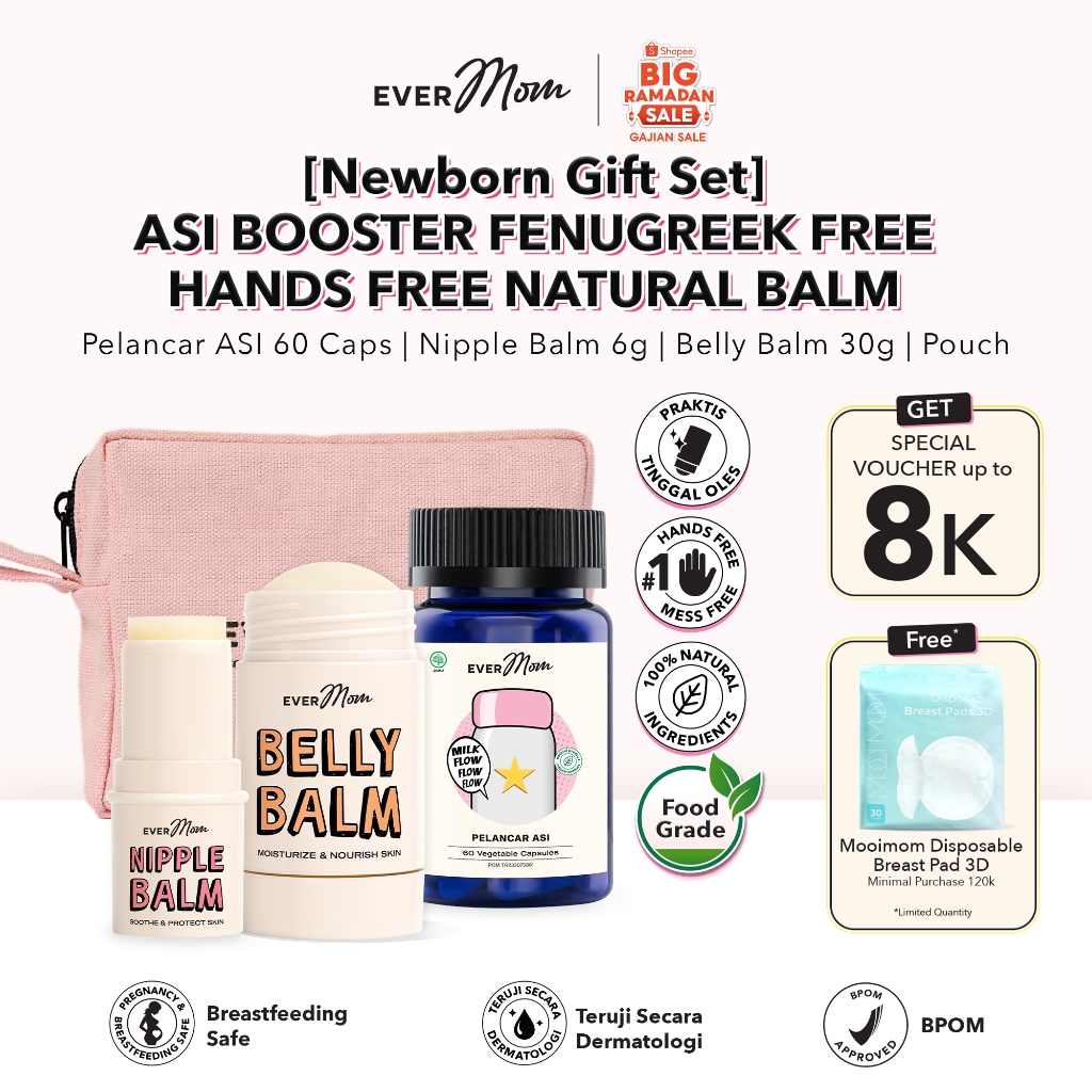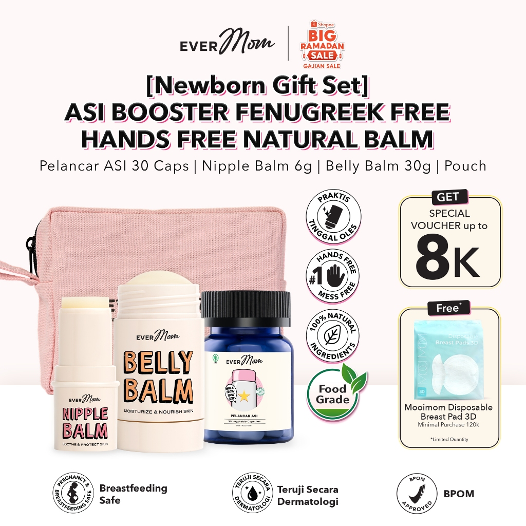 [Newborn Gift Set - Paket Ibu Melahirkan] Pelancar Asi + Nipple Balm + Belly Balm + Pouch