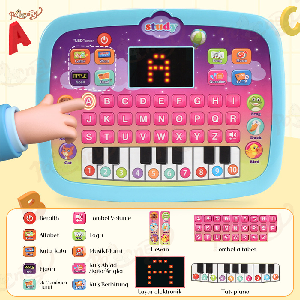 [PROMO] PONEY TABLET BELAJAR HURUF ANAK MAINAN EDUKASI MAINAN TABLET MUSIK PIANO ANAK INGGRIS LAPTOP MAINAN EDUKASI ANAK