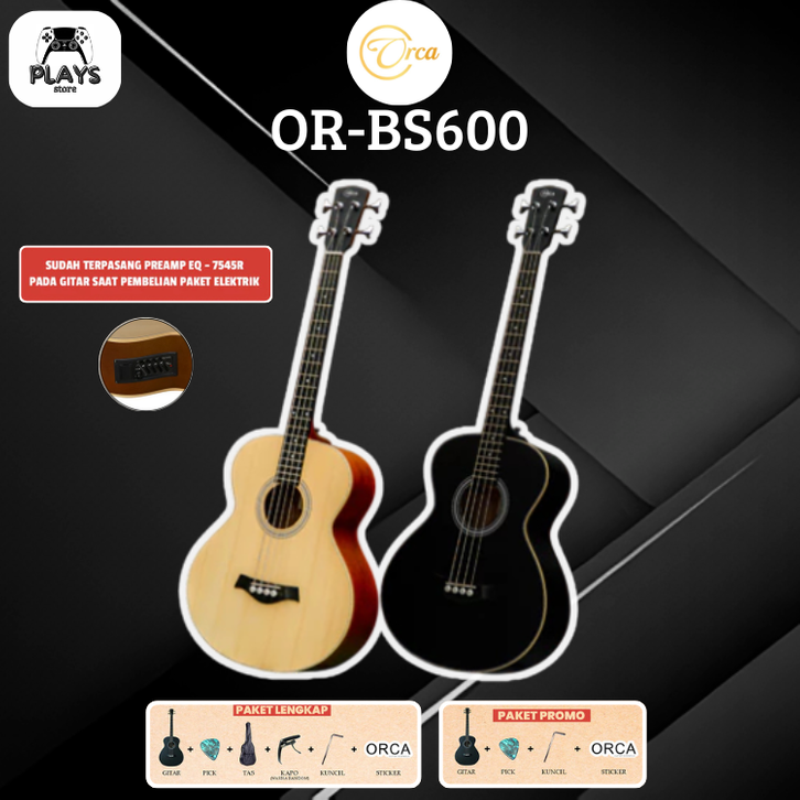 GITAR AKUSTIK LISTRIK ORCA TANAM BESI OR - BS600 SENAR 4 STRING GUITAR PACKING AMAN