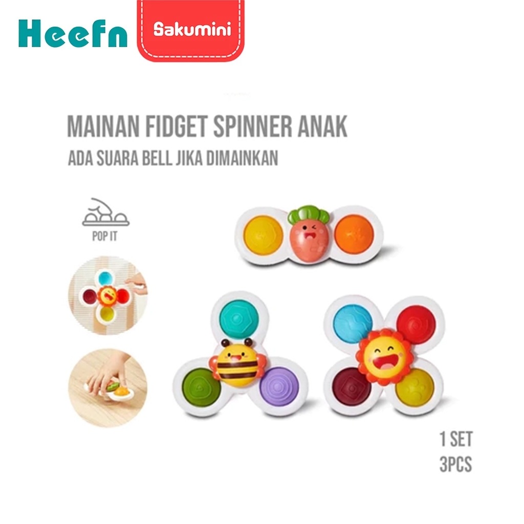 [PROMO] HEEFN X SAKUMINI 3IN1 FIDGET SPINNER SUCTION MAINAN ANAK EDUKASI POP IT SENSORIK MOTORIK BAYI