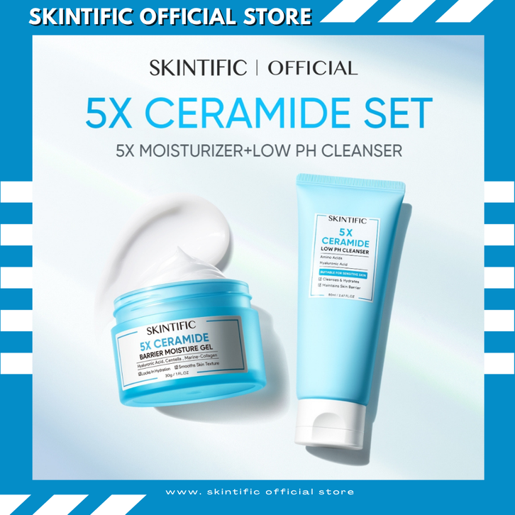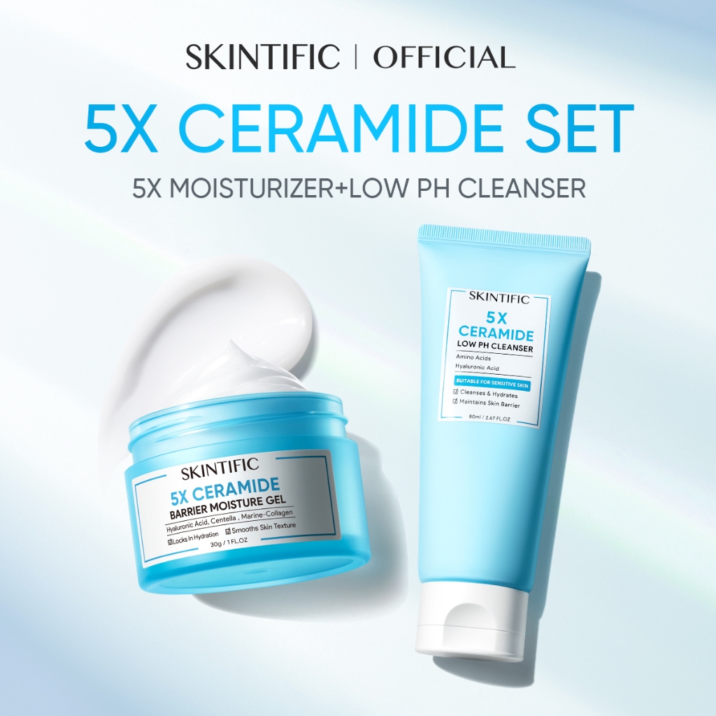 SKINTIFIC OFFICIAL STORE 2pcs Paket 5X Ceramide Low pH Cleanser 80ml 5X Ceramide Barrier Moisturizer Gel 30g Pelembab