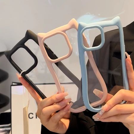 Softcase Cute 3D Cat Ears Silikon Akrilik HP Case For iPhone 15 14 13 12 11 Pro Max X Xs Max Xr Casing Lucu Kartun Shock