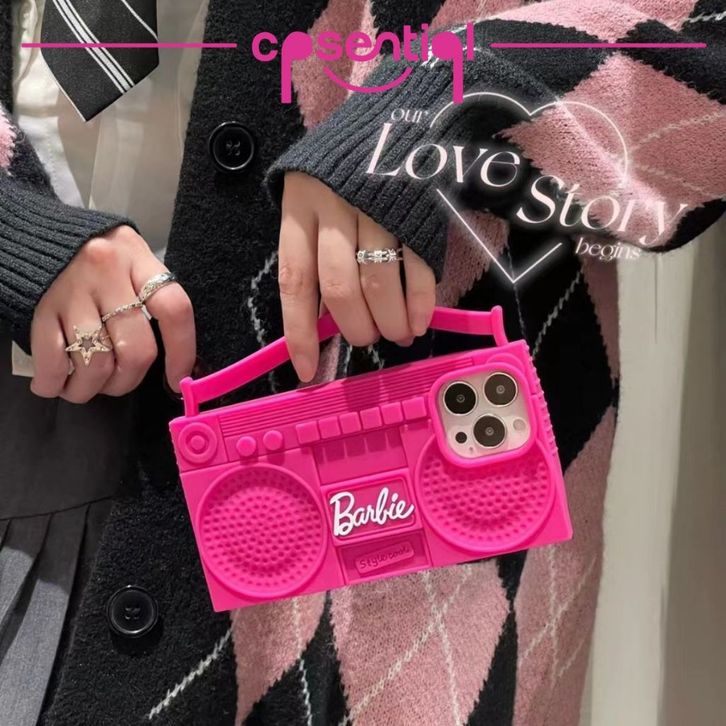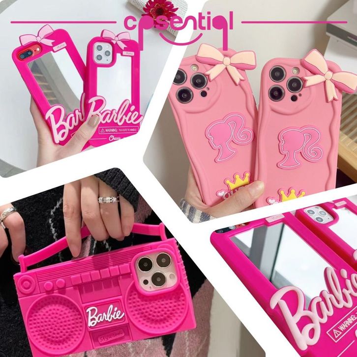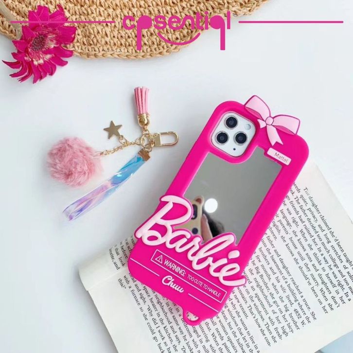 [NEW] Case Iphone 3D Barbie Mirror Keychain Pom Pom | 3D Barbie Speaker | 3D Barbie Queen | Case For IPhone 15, 15 Pro,