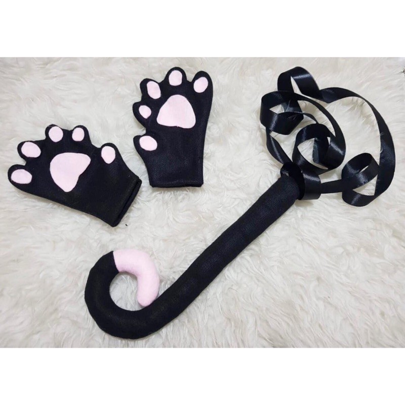 TERLARIS Kostum kucing Cosplay Cat Black Pink Bando kucing akseoris Bando Halloween kostum Hewan