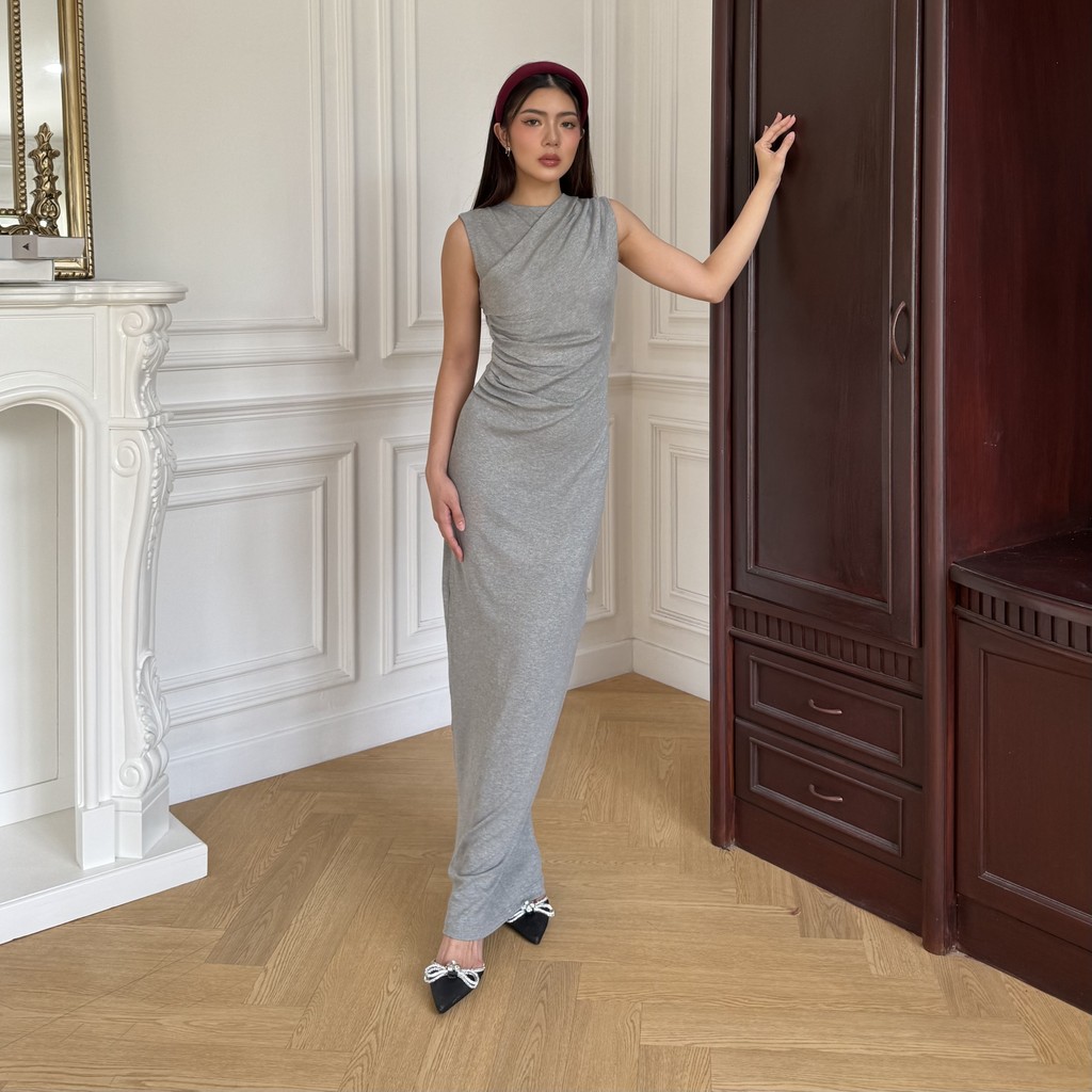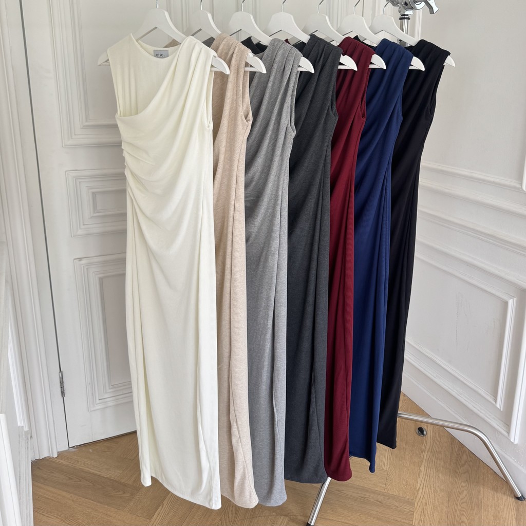 THETA DRESS | Basic Dress Panjang Wanita Rib Knit Basic Terusan Maxi Dress Korean Basic Long Dress