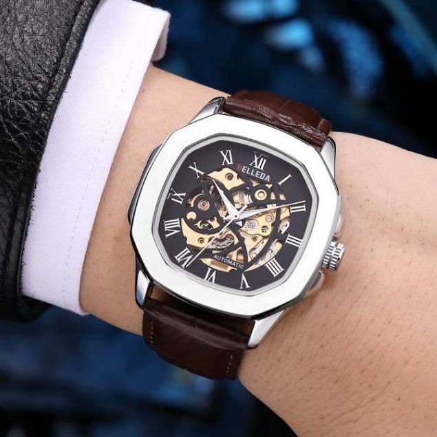 BELLEDA 9484 jam tangan pria Tali Kulit Segi Otomatis Unisex Pria Wanita Watch Anti Air Original Terbaik 2024/25