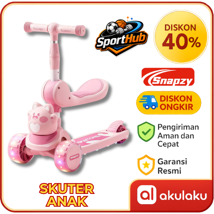 Skuter Anak Snapzy Skuter Sepeda Anak 2 in 1 Scooter Anak Roda 3 injak Bisa Lipat dengan Lampu Musik