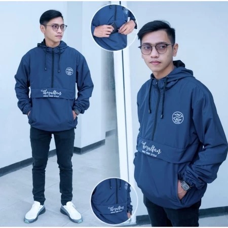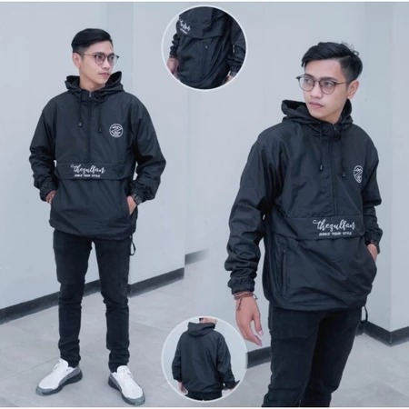 Jaket Parasut Pria Waterproof Doraemon Saku Depan Hitam Premium - Jaket Pria Keren Parasut Doraemon Kekinian Terlaris