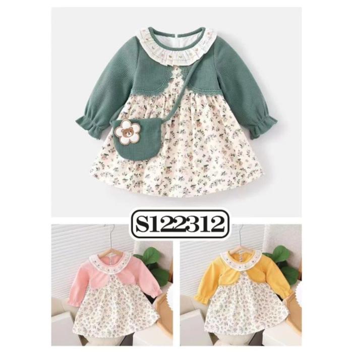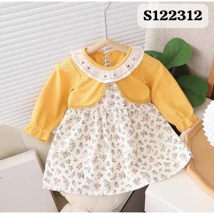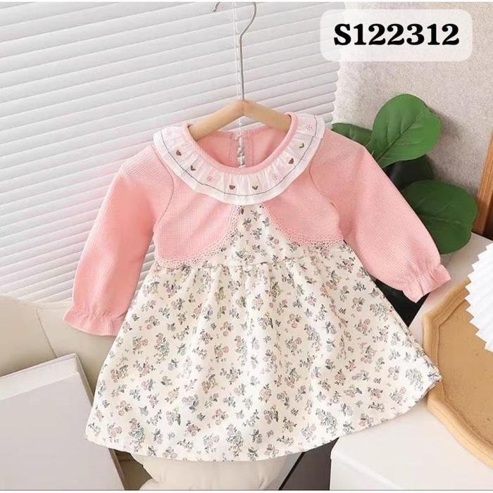 Gaun Dres Blezer Fashion Anak Perempuan Motif Bunga Baju Anak Perempuan Baju Anak Murah - Ping, S/M (4-12 Bln)