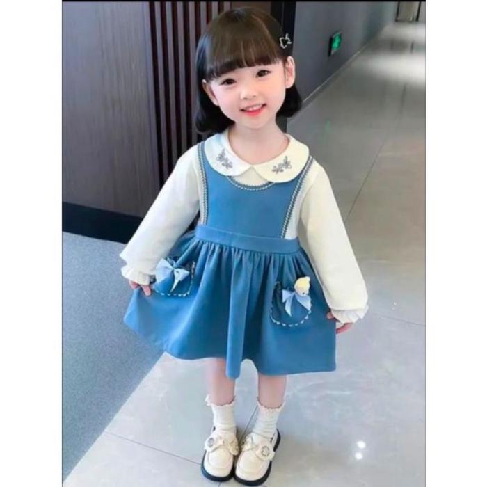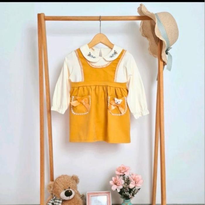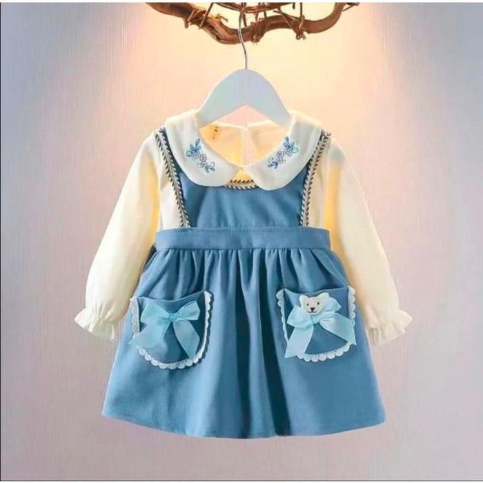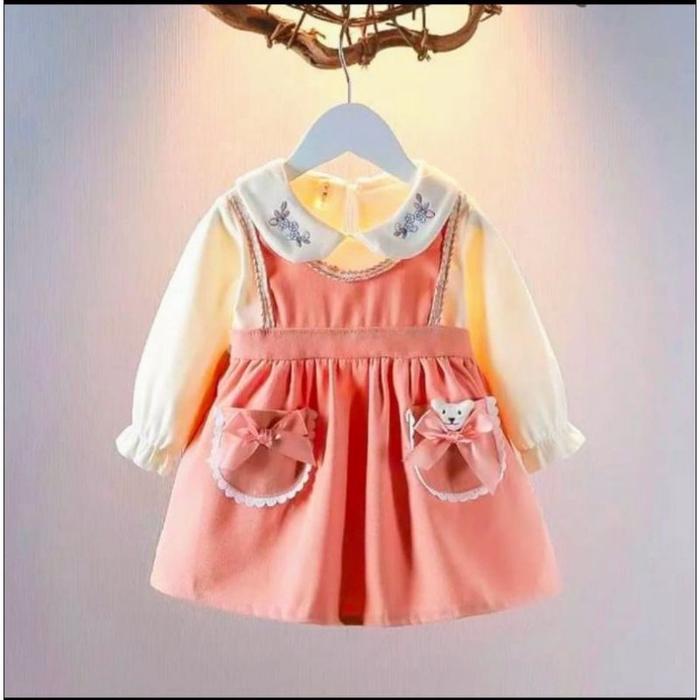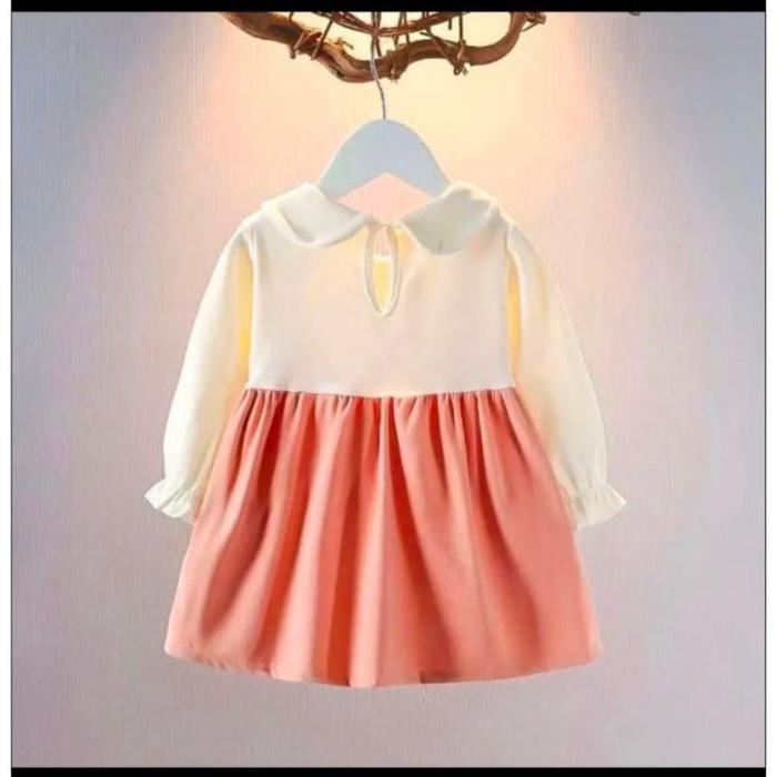 Gaun Dres Jemima Fashion Anak Perempuan Motif Polos - Ping, S (4-12 Bln)