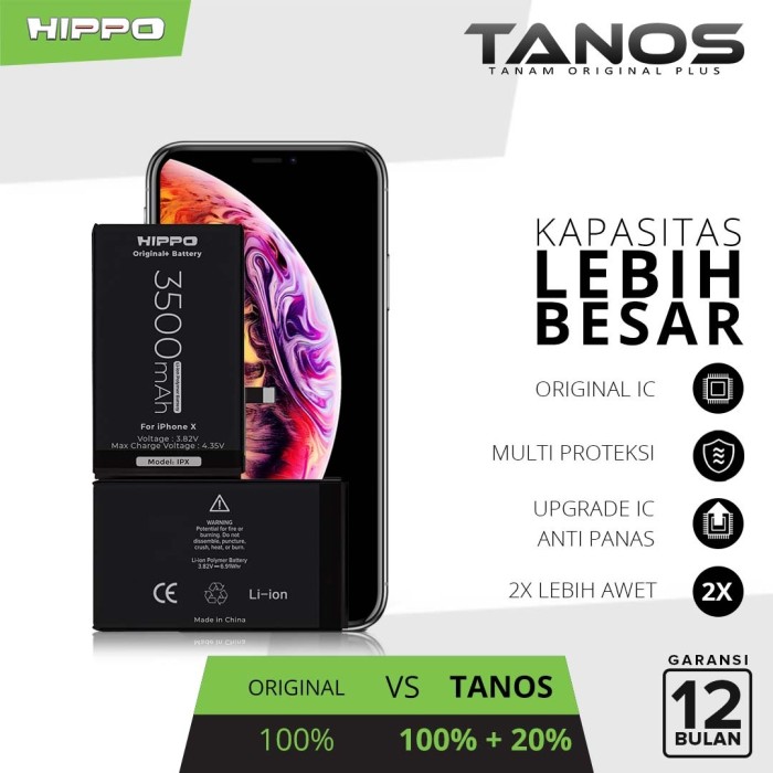 Hippo Baterai Tanos Highcapacity For Iphone 8 Plus X Xs Max 11 Pro Max - 8 2270Mah