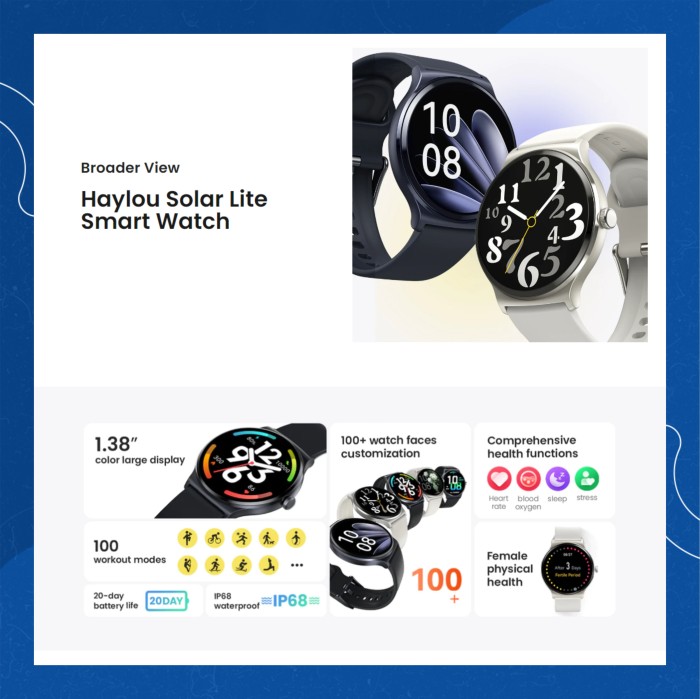 Haylou Solar Lite Smart Watch Ip68 Sp02 1.38" Display - Biru