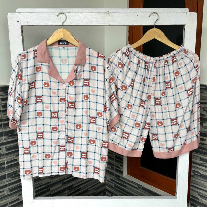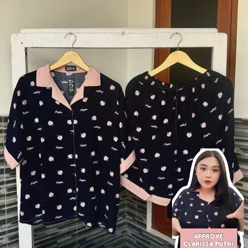 Baju One Set Wanita Pendek Rayon Premium Jumbo Setelan Motif Berkerah Nyaman