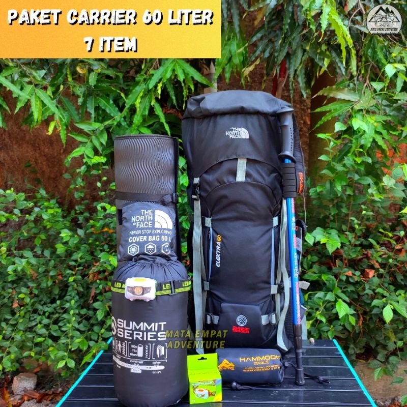Tas Carrier Gunung 60 Liter dengan Peralatan Camping Outdoor Lengkap