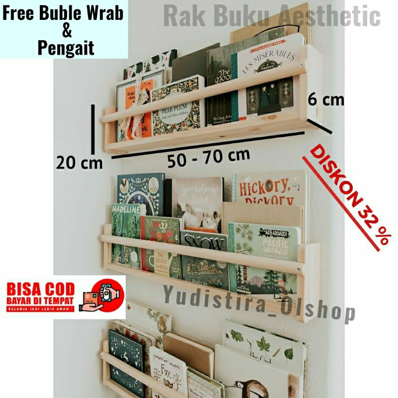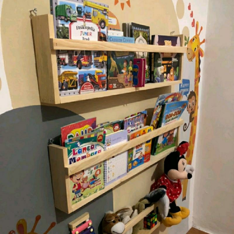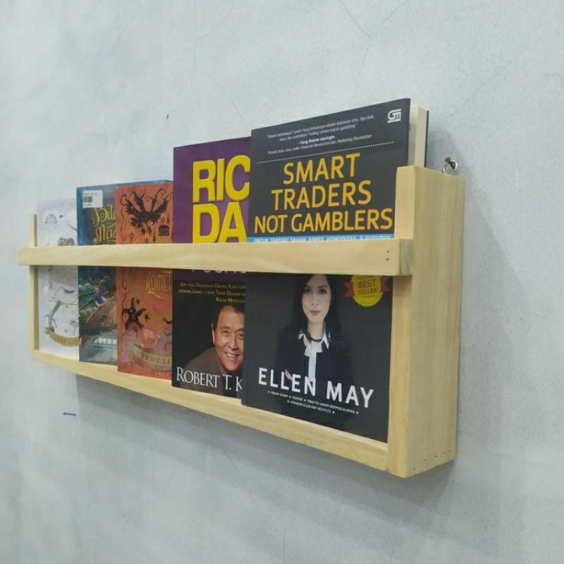 Rak Buku Kayu Gantung Aesthetic untuk Majalah Novel dan Qur'an