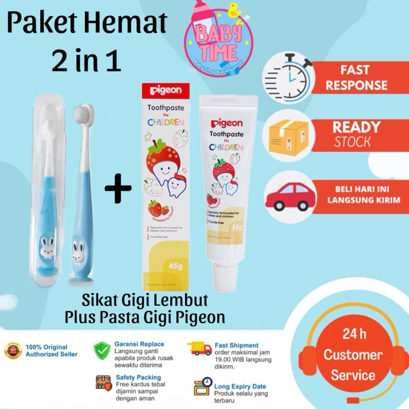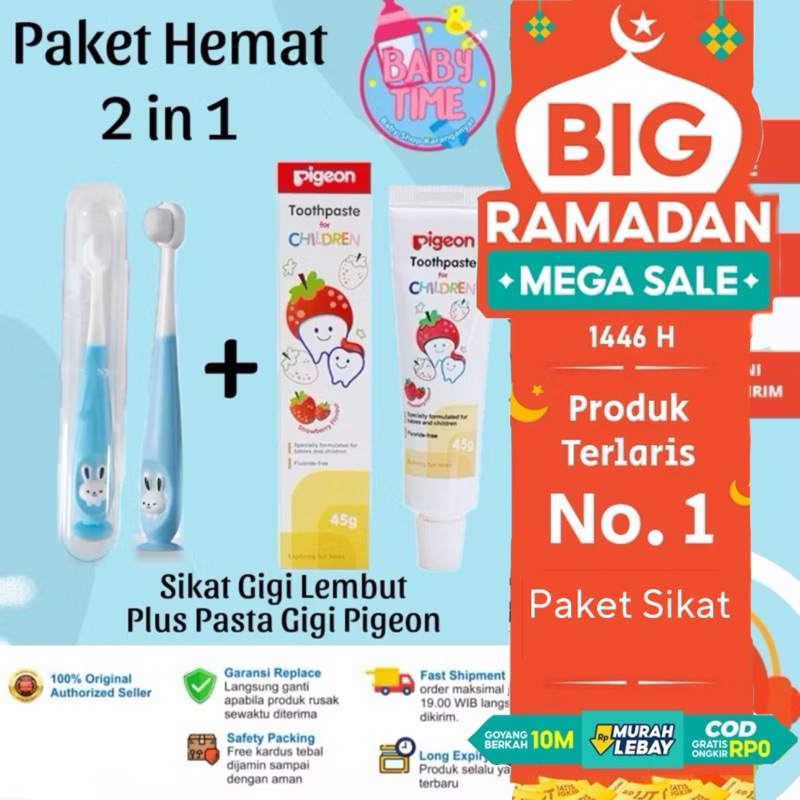 Paket Perawatan Gigi Anak Sikat Gigi Bayi Pasta Gigi Pigeon dan Enzim Aman