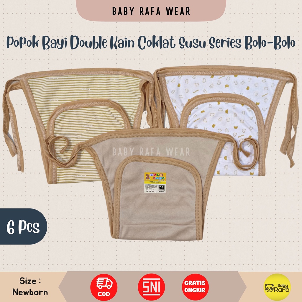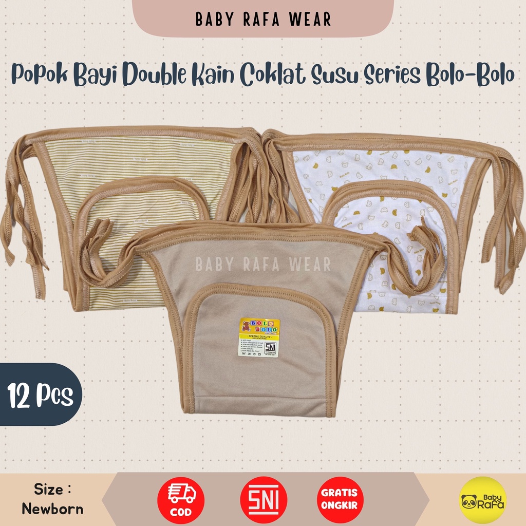 Serian Coklat Susu - 12 Pcs / 6 Pcs Popok Bayi Double Kain COKLAT SUSU SERIES Merk SNI Bolo - Bolo / Popok Double Kain