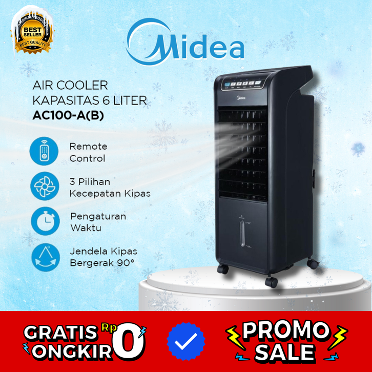 Midea Air Cooler 6.0 Liter AC100-A(B) Remote Control Dingin Terbaik Portable AC Pendingin Ruangan Official Store