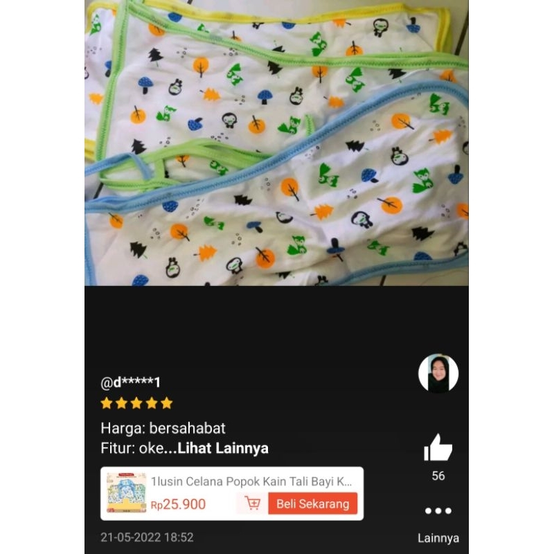 1 Lusin Celana Popok Kain Tali Bayi Katun Motif Div POK04