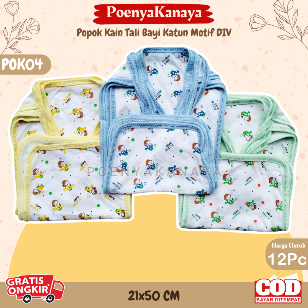 1lusin Celana Popok Kain Tali Bayi Katun Motif Div POK04