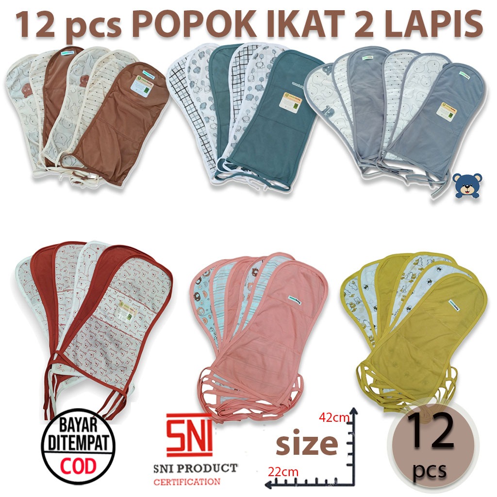 12 Pcs Popok Kain Bayi 2 Lapis Katun Polos Pakai Ulang Popok Bayi Cuci Ulang Newborn Baru Lahir Popok Kain Tali Tebal