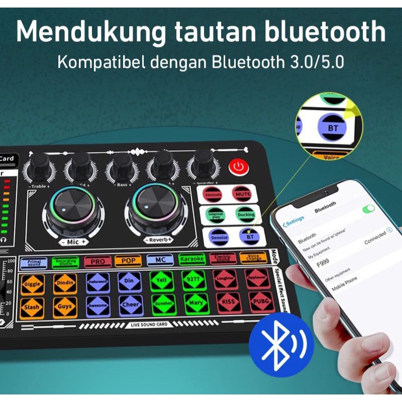 Sound Card F999 Original Kimiso Sound Card Bluetooth Original Pengurangan Kebisingan Compatibel Eksternal