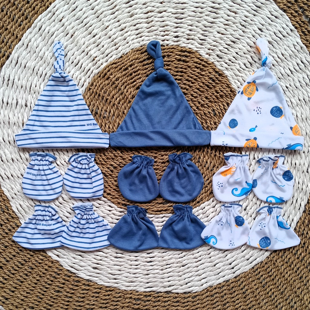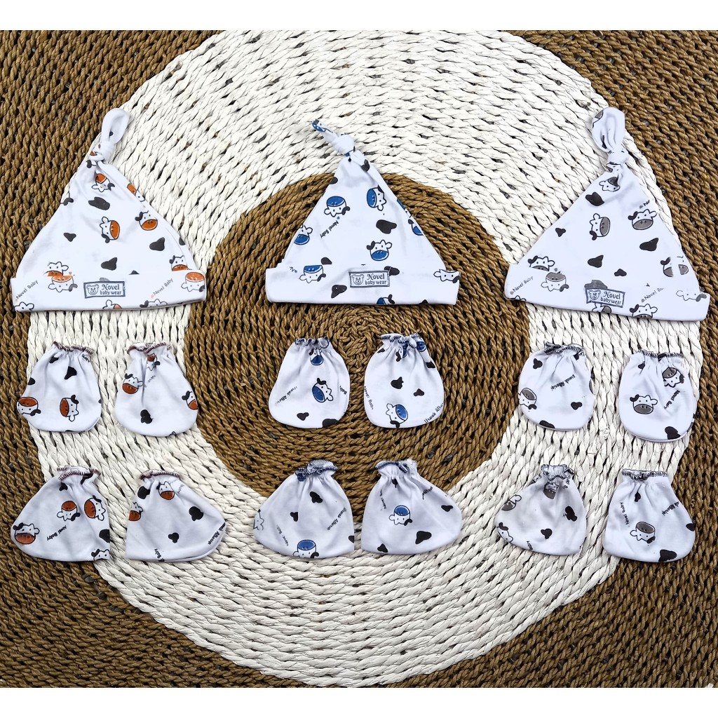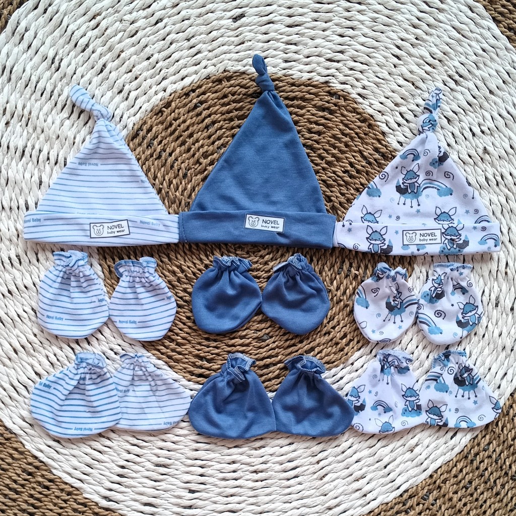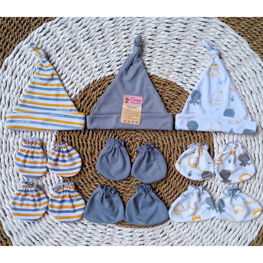 9in1 / 3 Set Topi Dan Sarung Tangan Kaki Baby Newborn 0-3 Bulan Bayi Baru Lahir anak perempuan laki laki