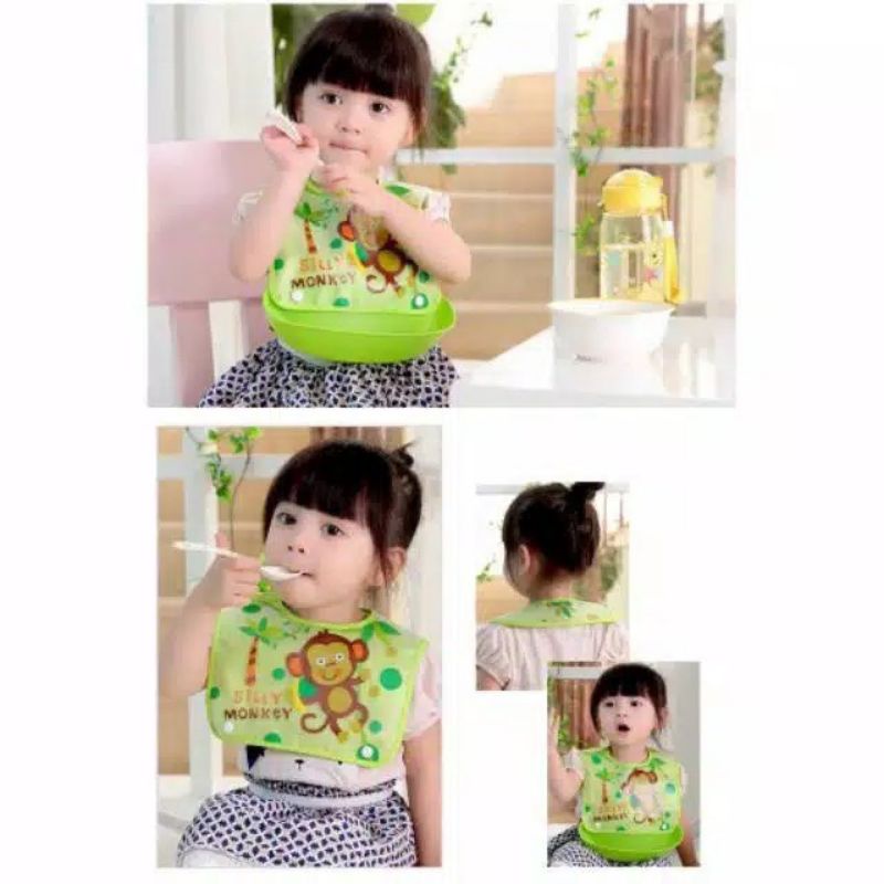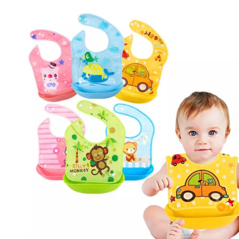 Celemek Makan Bayi Plastik Silikon Anti Air Baby Bib Bibs Slabber Silicone