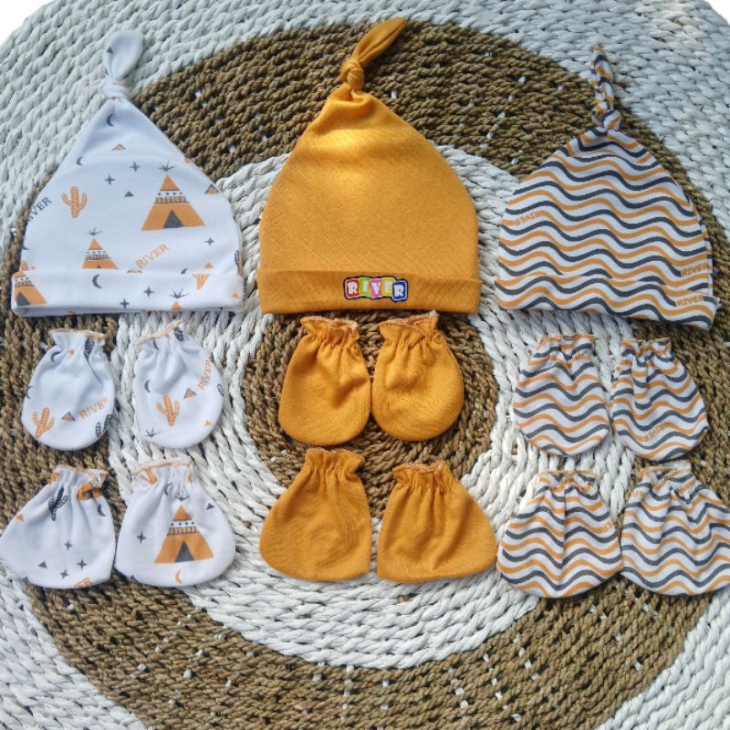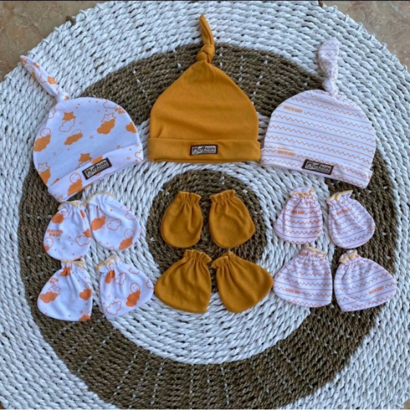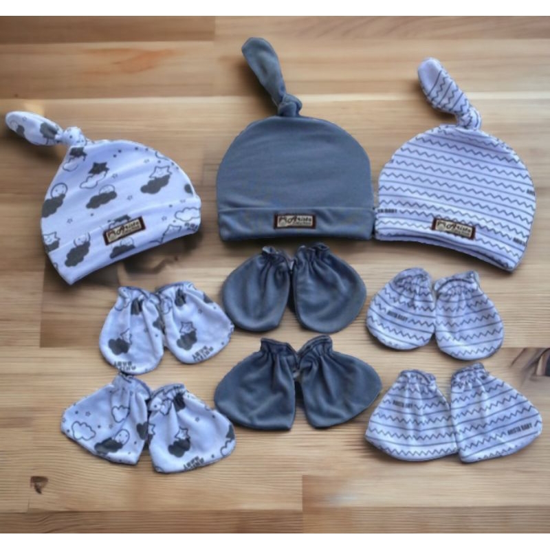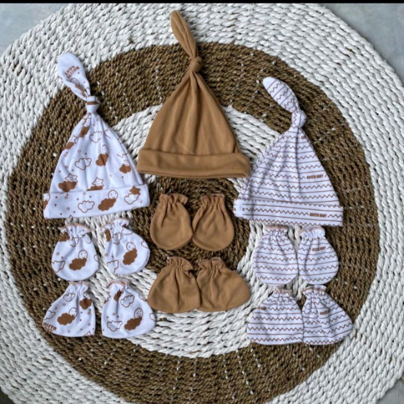 3 Set Topi Kupluk Sarung Tangan Dan Sarung Kaki Bayi Newborn Motif Terbaru