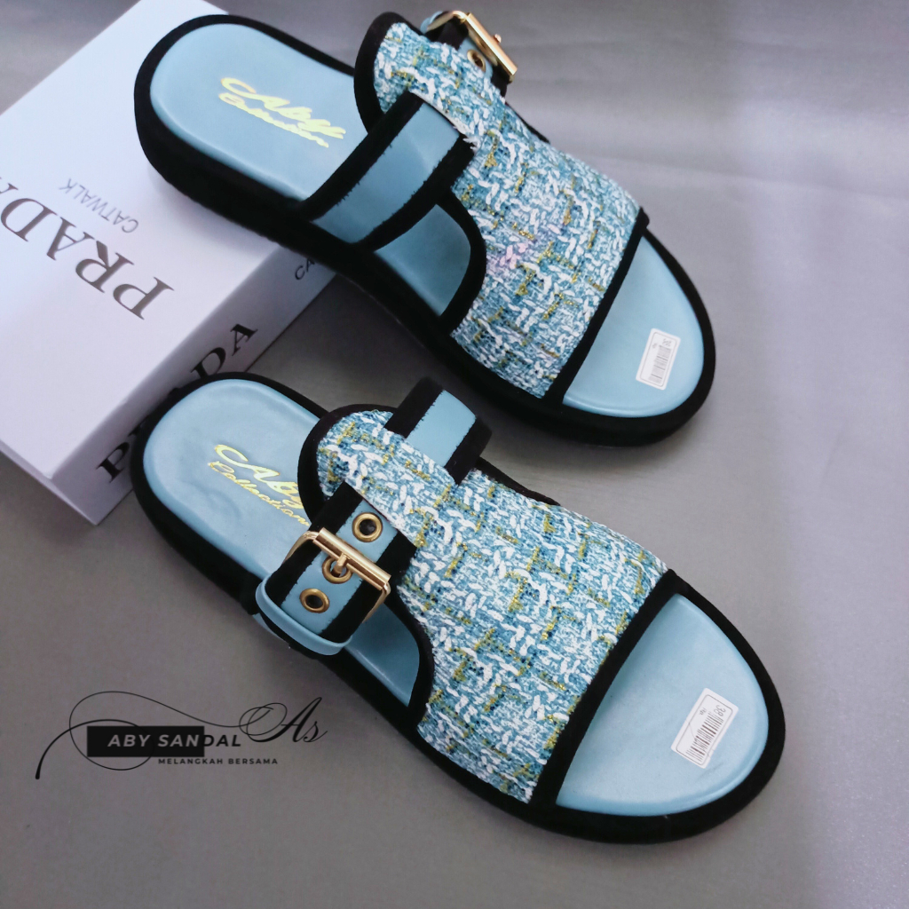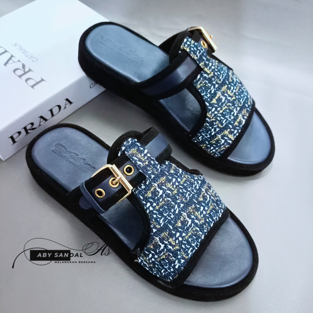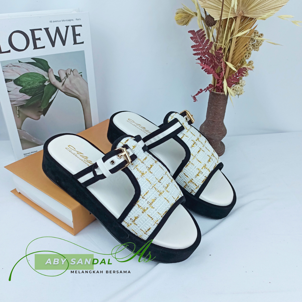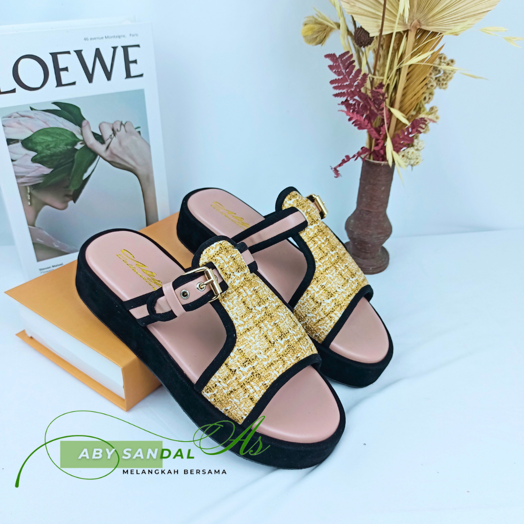 Sandal Platform Wanita Tali Gesper Motif Rajut Estetik Terbaru Kekinian Best Seller