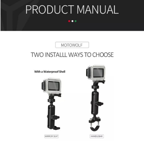 MOUNTING ACTION CAM MOTOWOLF GOPRO CAMERA 360 BREKET HOLDER STANG SPION
