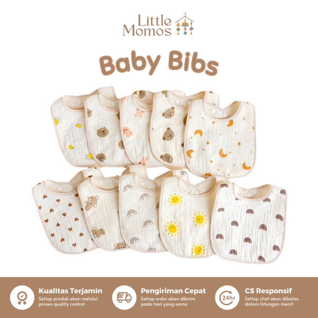 Little Momos Celemek Bear Mpasi Bayi Katun Cotton Muslin Baby Bib Korean Bear