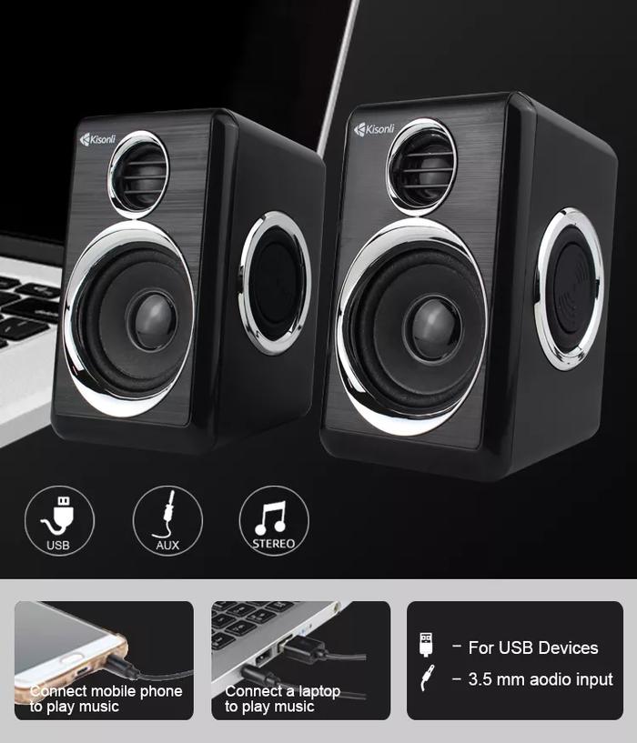 KISONLI SPEAKER 20 PC KOMPUTERLAPTOP STEREO SPEKER DOUBLE BASS T005 SILVER
