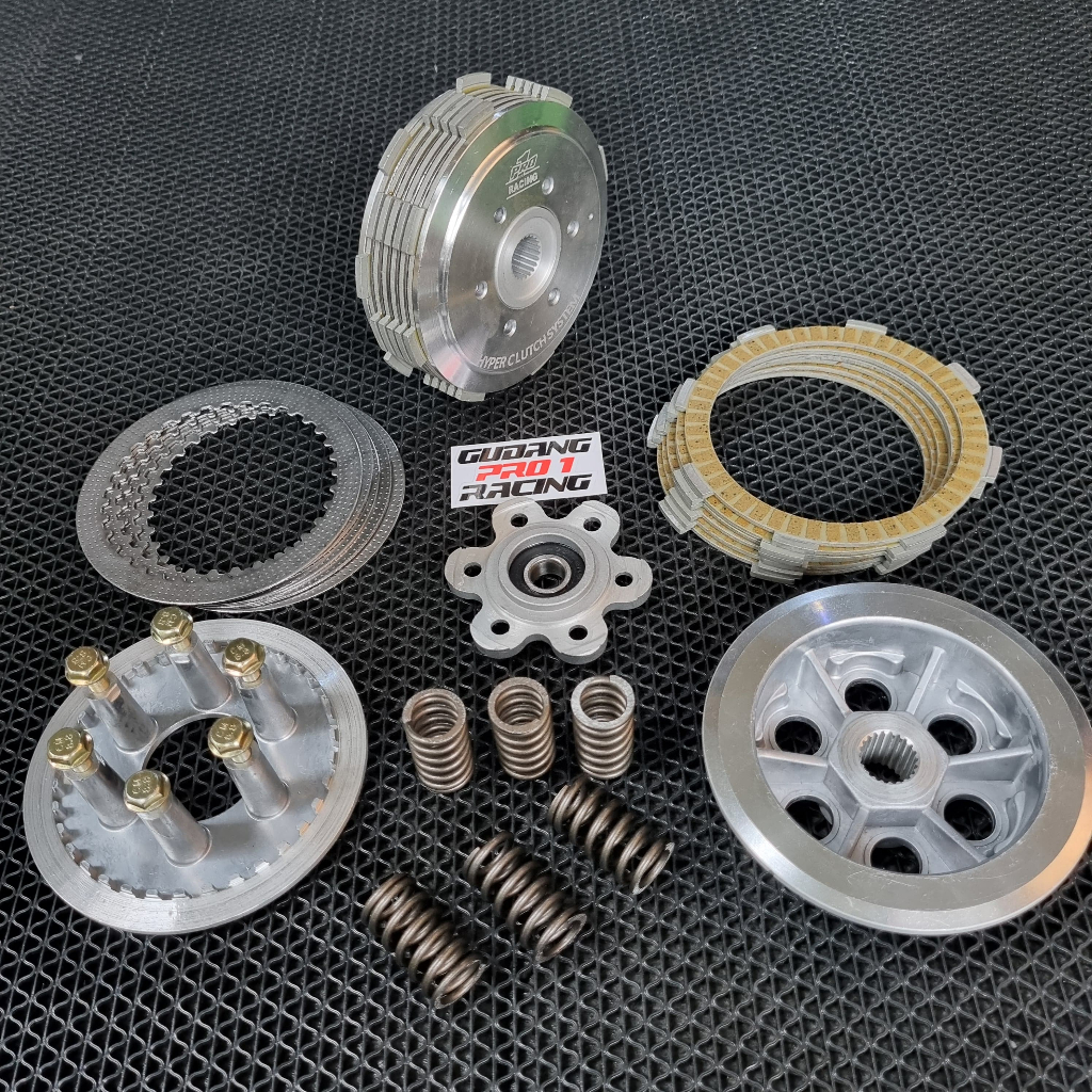 1 SET RUMAH KAMPAS KOPLING RACING. KAMPAS ISI 6, PLAT ISI 5, PER 6 ( CRF 150 VERZA NEW MEGA PRO)