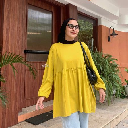 Ruffle Top Kaos Polos Oversized Long Sleeve Lengan Panjang Cotton Combed Bigsize Jumbo