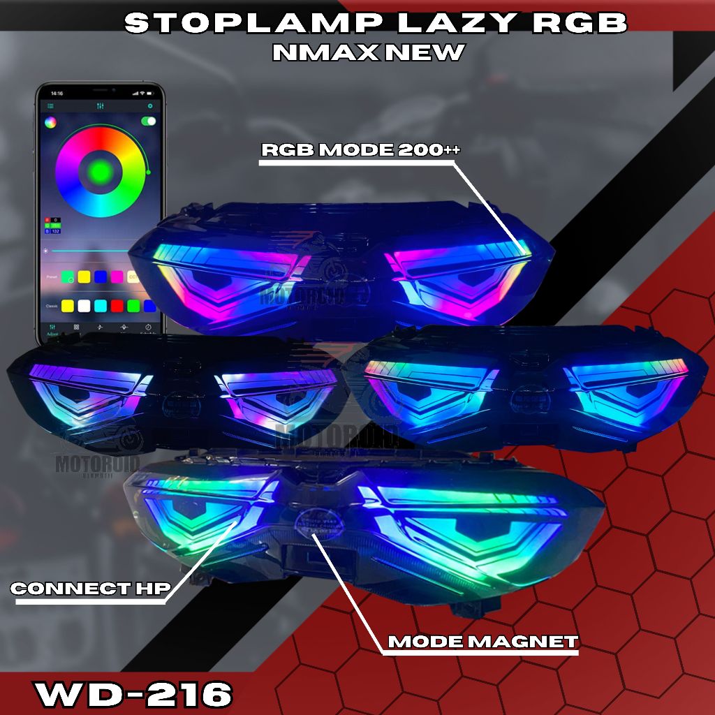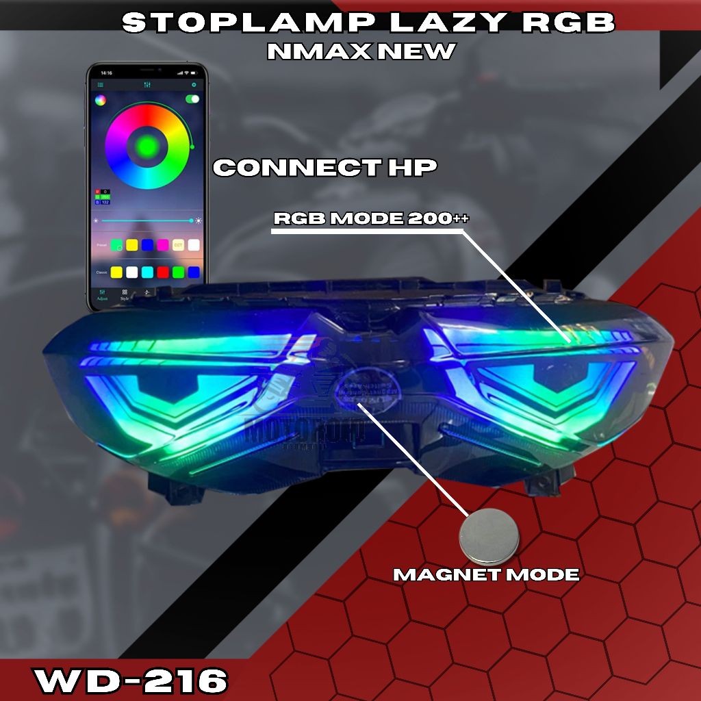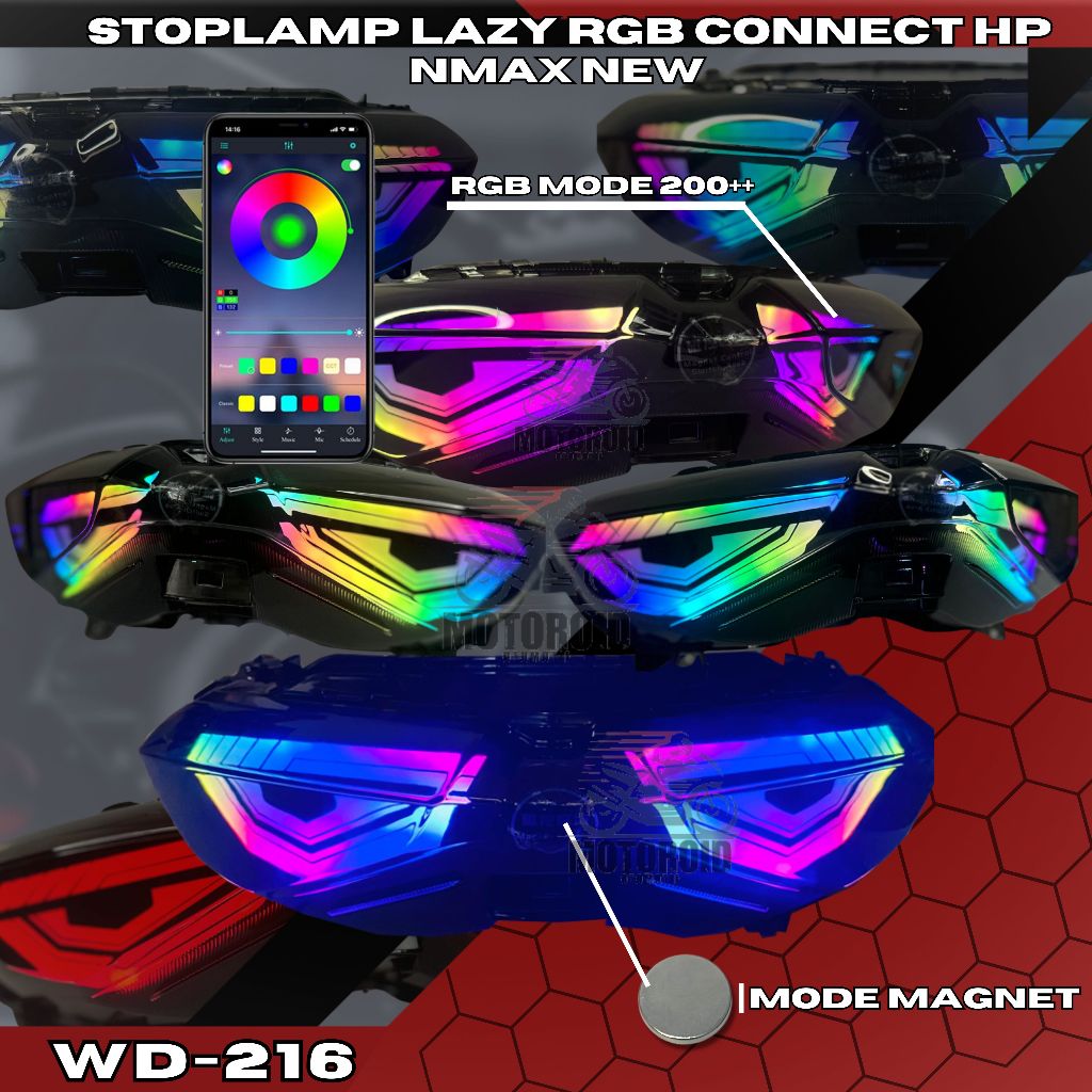 Lampu Stop Lazy Nmax New RGB Connect HP Mode Magnet 200++ PNP 3in1 Plus Sein Running Include Socket