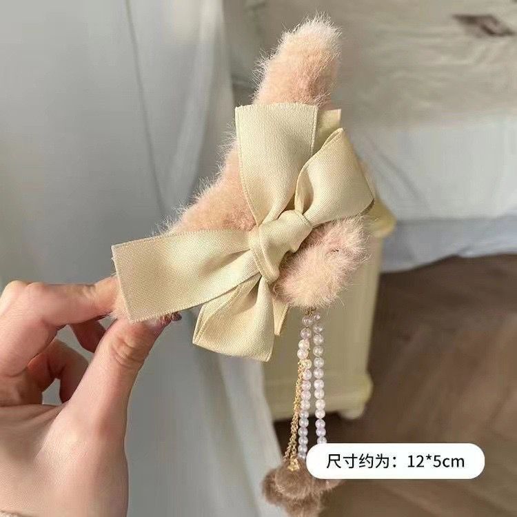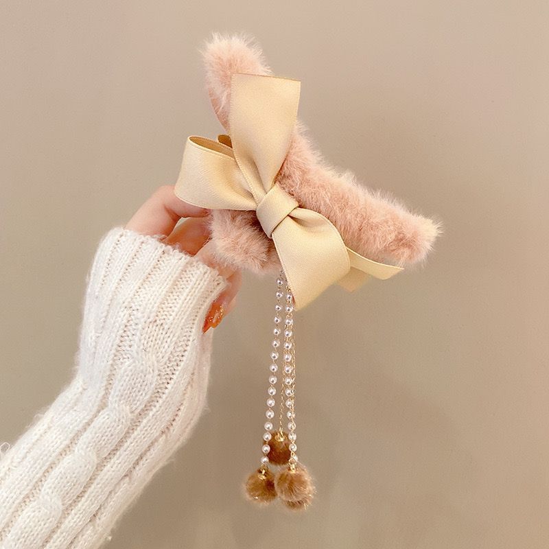 Jepit Rambut Wanita Motif Pita Jedai Pom Pom Aksesoris Rambut Wanita Fashion Korea