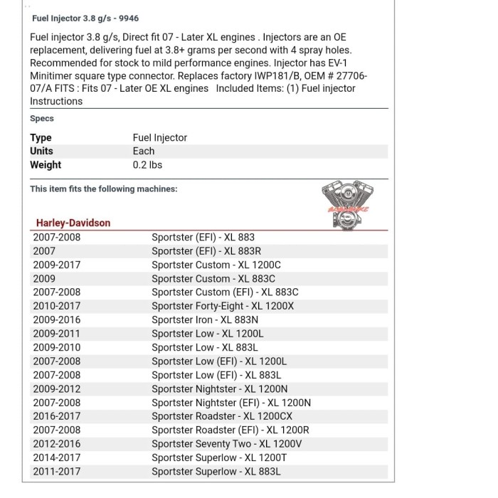 INJECTOR HARLEY SPORTSTER INJECTOR NOZZLE HARLEY SPORTSTER