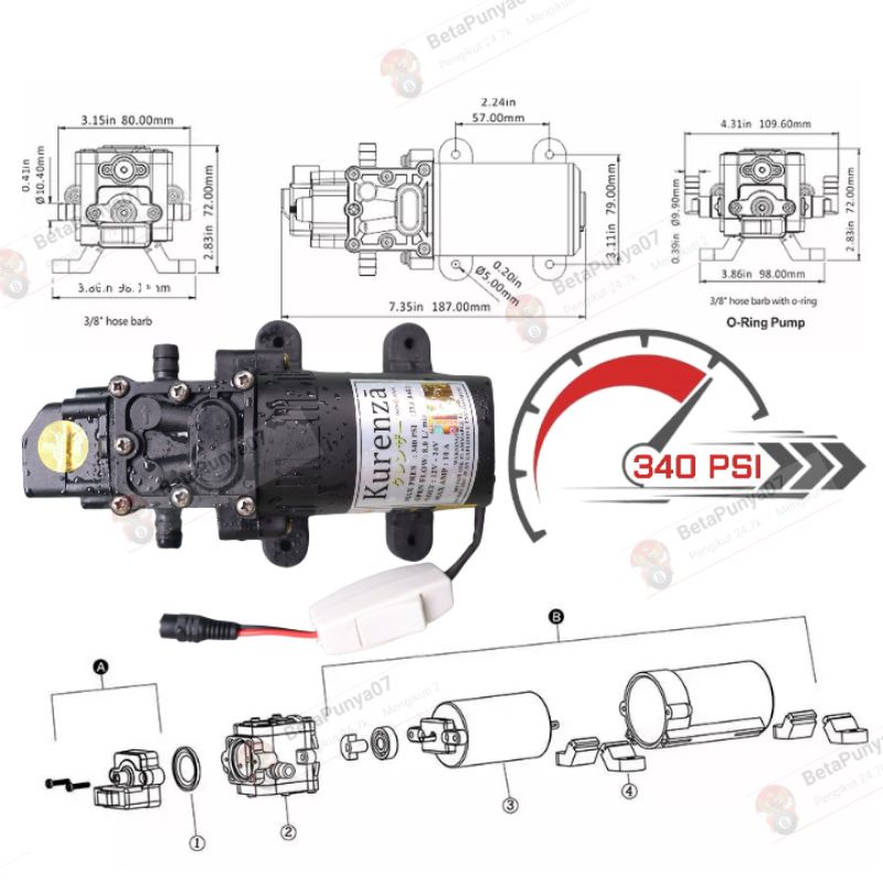 Pompa Air Otomatis 340psi DC Water Pump 100W Alat Steam Jet Cleaner