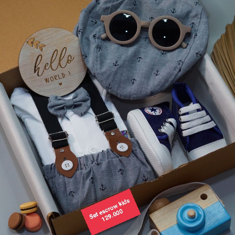 Paket Giftbox Set Marylin Jangkar Set Pakaian anak|baju anak|setelan Anak Cowok|Setelan Bayi |Baju Anak