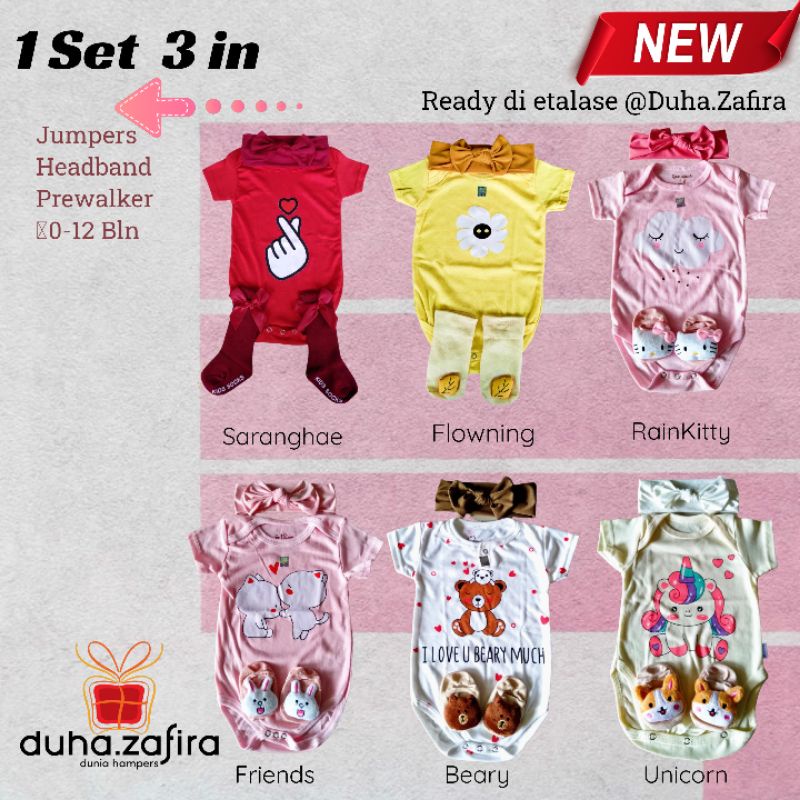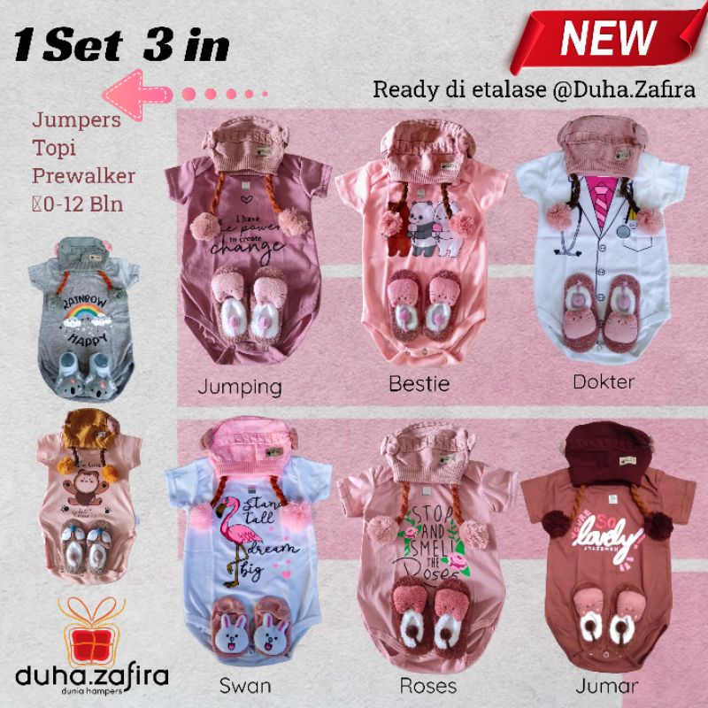 Duha Zafira | 1 Set 3in baju bayi Newborn/ Jumper / Topi Bonet/ Prewalker/ Set baju bayi Newborn/ Hampers Bayi