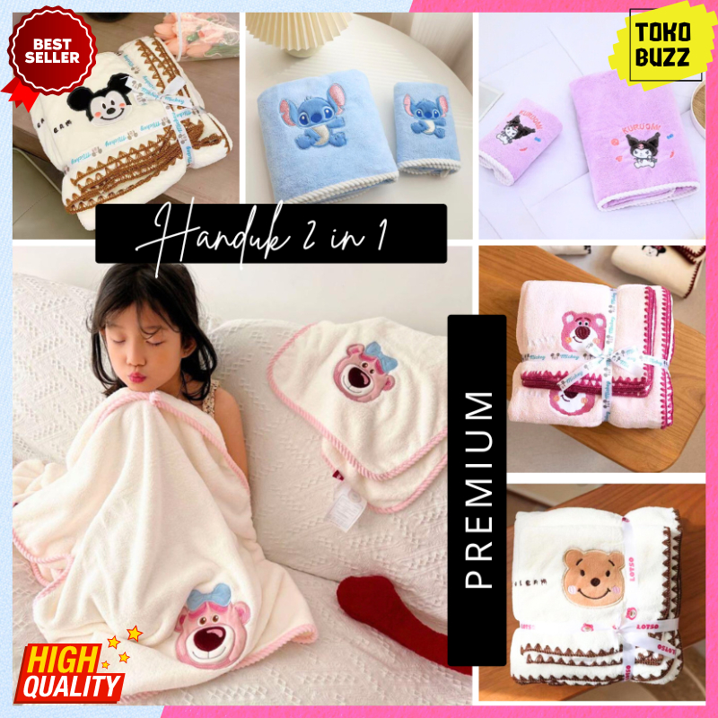 HANDUK MANDI ANAK Bayi Baby Tebal Lembut Halus Serap Air Karakter DISNEY Handuk Tangan Towel 2in1 Kado Hampers