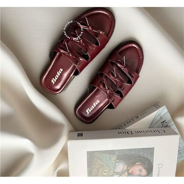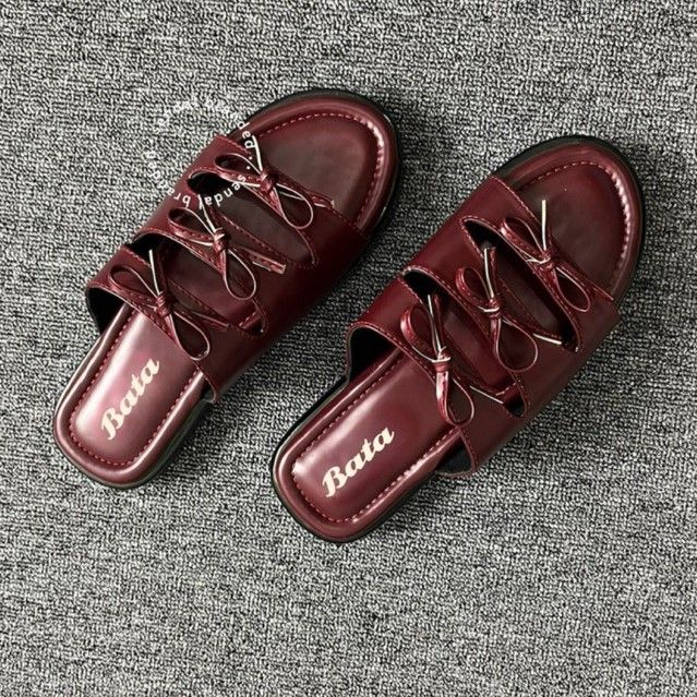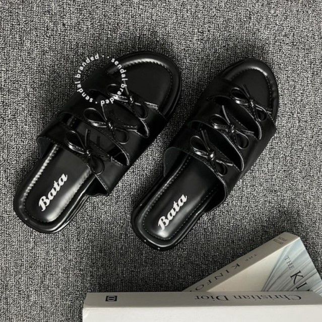 Sendal Lebaran 2026 Terbaru Kekinian Sandal Wanita Wedges 5cm Selop Pita Lucu Korea Style Sandal Wedges Slide Anti Licin
