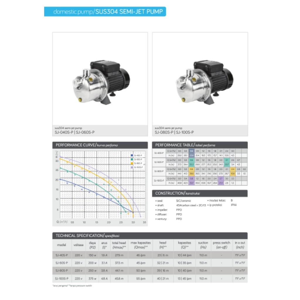 Pompa Semi Jet Stainles Waterplus SJ 80 S