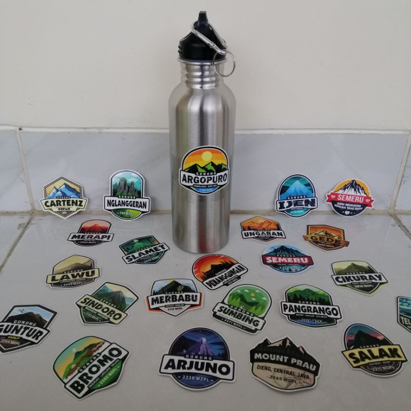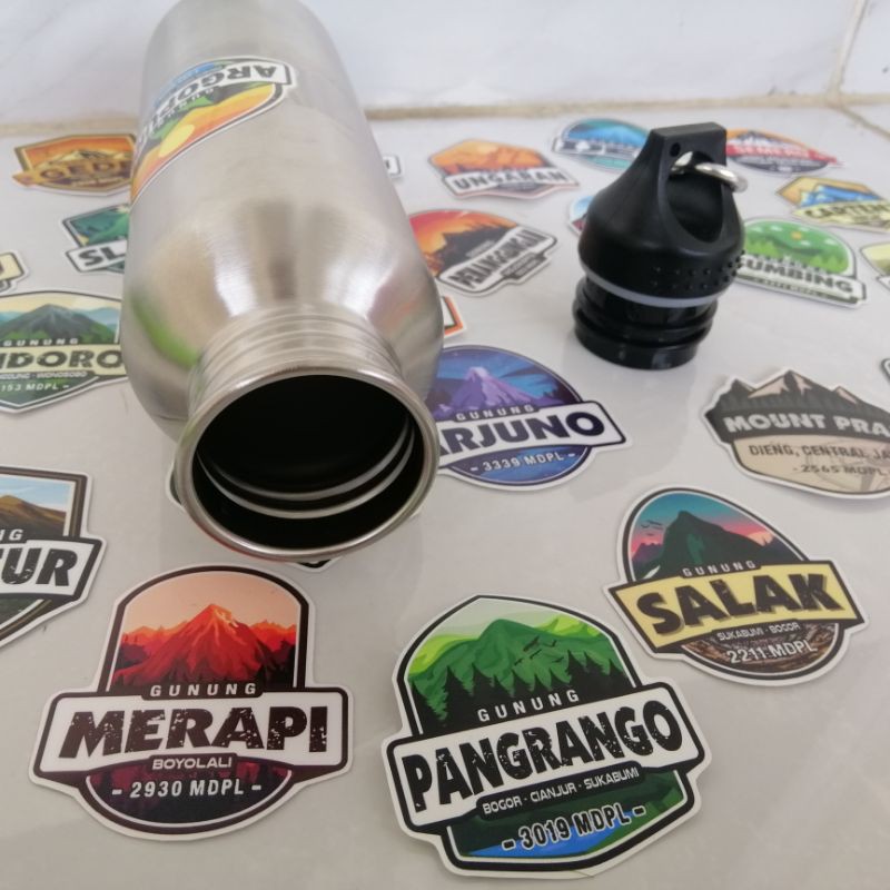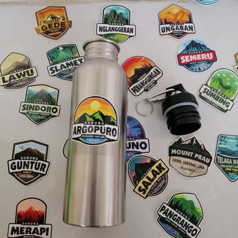 Botol Minum Stainless 750 ml Carabiner + Stiker Gunung Outdoor Thermos Termos